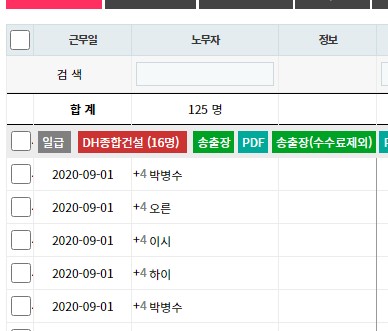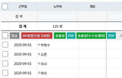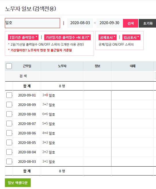2. 일보관리의 노무자 이름 앞에 출력일수가 표시됩니다.