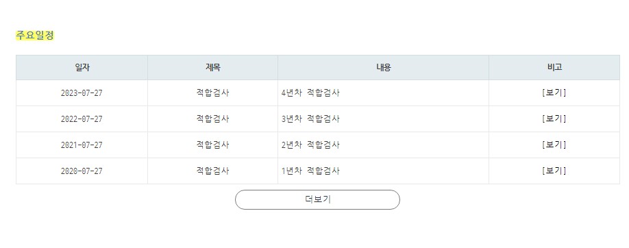 - 적합관리 주요일정 자동추가 버튼을 클릭하면 주요일정(스케줄알림)이 1년차~4년차 까지 자동 등록됩니다.