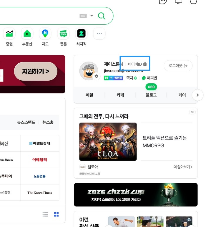 - 네이버 로그인 후 "네이버ID" 를 클릭합니다.